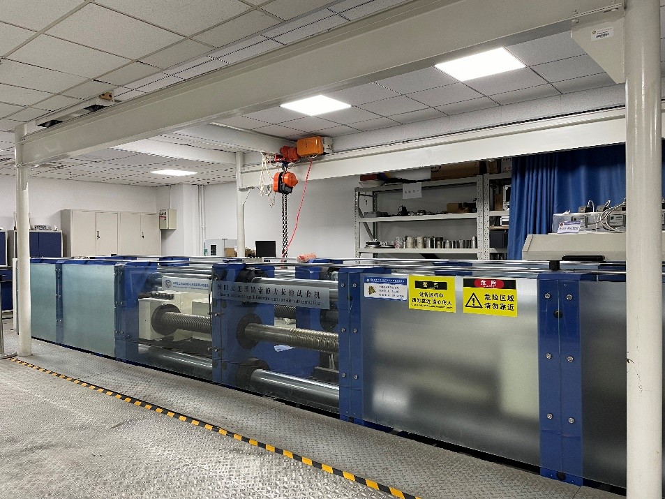 5m拉伸力学实验分室主要服务于新型锚杆材料的静力拉伸力学性能的测试。为大变形材料的研发提供一个测试实验平台,并成功研制了巨型NPR锚索。该锚索因其高恒阻力与忍受大变形的优异力学特性,成功应用于边坡监测,并基于此研发了滑坡牛顿力监测预警系统。5m拉伸力学实验分室主要为一个功能性分室,为材料的性能测试,检测以及参数调整提供实验平台。
