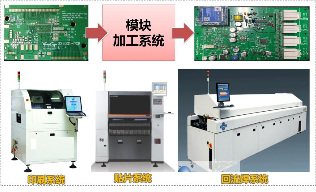 模块加工开模实验系统由锡膏印刷系统、贴片系统、回流焊系统、压缩空气系统、传输轨道等核心部件构成。系统功能特点:(1)设备的模块化组合;(2)系统设备稳定性好;(3)适用元器件范围广 ;(4)适用PCB的范围广;(5)产品适用范围广;